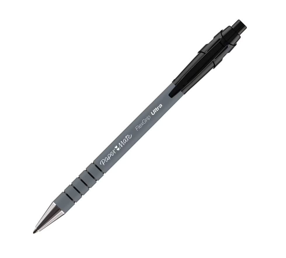 Dotata di fusto in gomma con speciale impugnatura ergonomica ad anelli, la penna a scatto Paper Mate® Flexgrip® Ultra è stata ideata per il massimo comfort.
